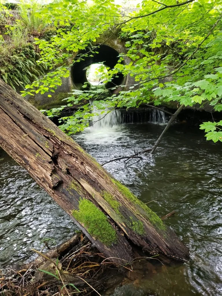 This offshoot of Big Creek is surrounded by our native vine maples. It is flanked by a rural neighborhood and is seated on a low gradient flood plain, making it more suitable habitat for salmon species such as chum.